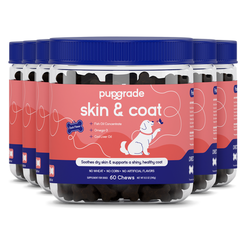 Suitable for dogs across breeds, sizes, and ages, PupGrade Skin & Coat Chews serve as a delightful treat during or after meals.